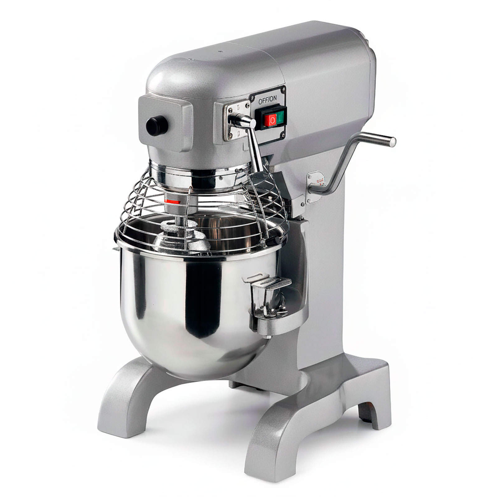 La CSB-PLUTONE 20 es una batidora planetaria de capacidad media, ideal para cocinas comerciales, panaderías y pastelerías que requieren un mayor volumen de producción. Al igual que el modelo 10L, presenta una sólida estructura pintada y cuenta con tres velocidades (engranaje de acero) para manejar eficientemente lotes más grandes. Está equipada con las tres herramientas estándar y reforzada con microinterruptores de seguridad en el recipiente y la tapa para garantizar la operación segura.