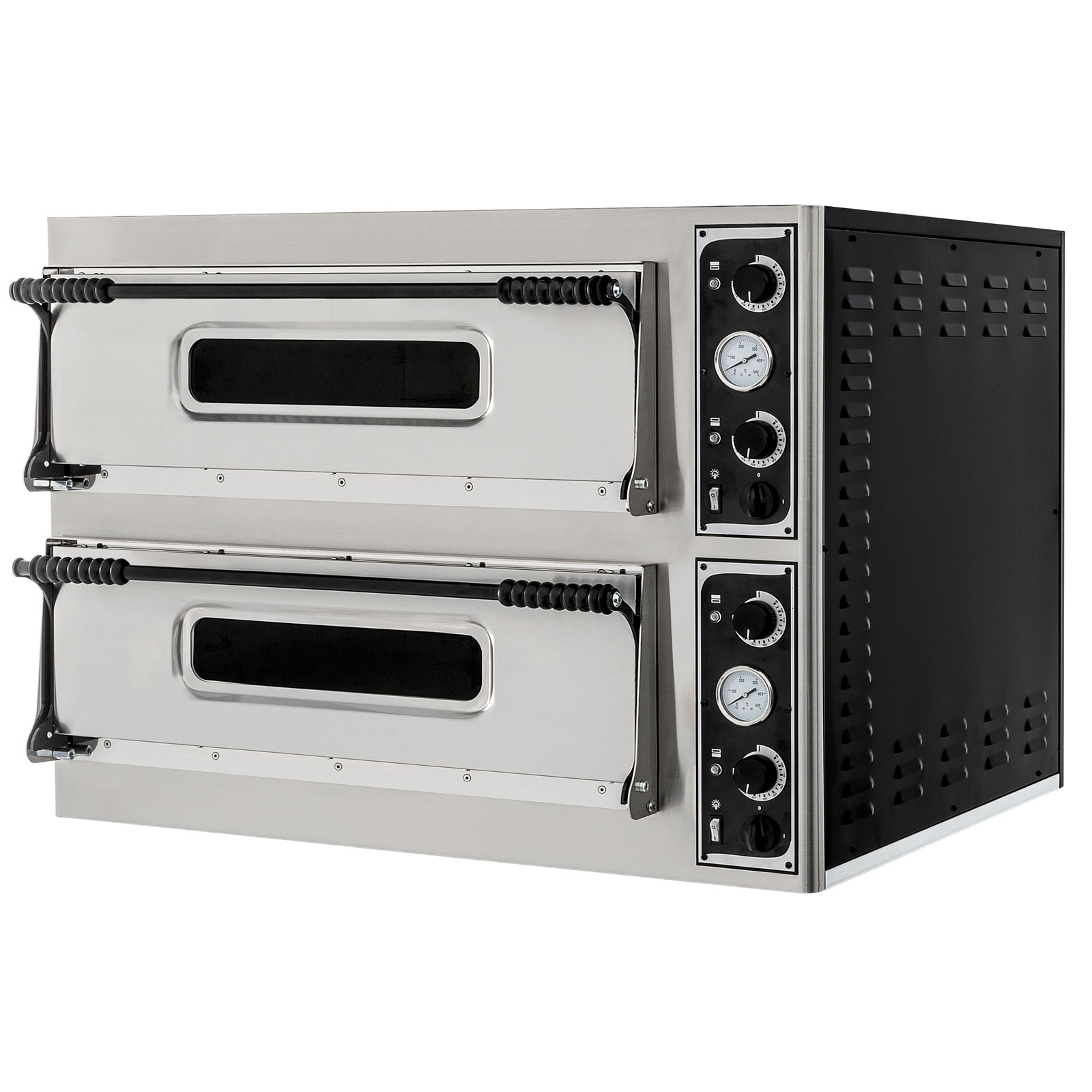 El CSB-BASIC 66 es un horno de pizza profesional de dos cámaras independientes, diseñado para alta productividad. Permite cocinar simultáneamente hasta 6 pizzas de 32 cm por cámara (12 pizzas en total). Es ideal para establecimientos con gran demanda, ofreciendo control de temperatura independiente en cada cámara, iluminación interna y la posibilidad de personalizarlo con accesorios como campana y mesa de soporte.