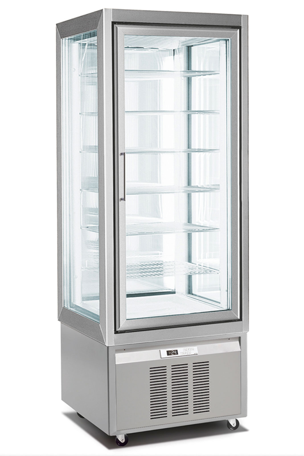 La serie CSB-420 de Congelación son vitrinas expositoras verticales ideales para la conservación y exposición de helados, tartas congeladas y otros productos bajo temperatura negativa. El sistema de frío estático con desescarche manual es eficiente para este tipo de aplicación. El modelo está disponible con una, tres o cuatro caras de vidrio para maximizar la visibilidad de la mercancía congelada.